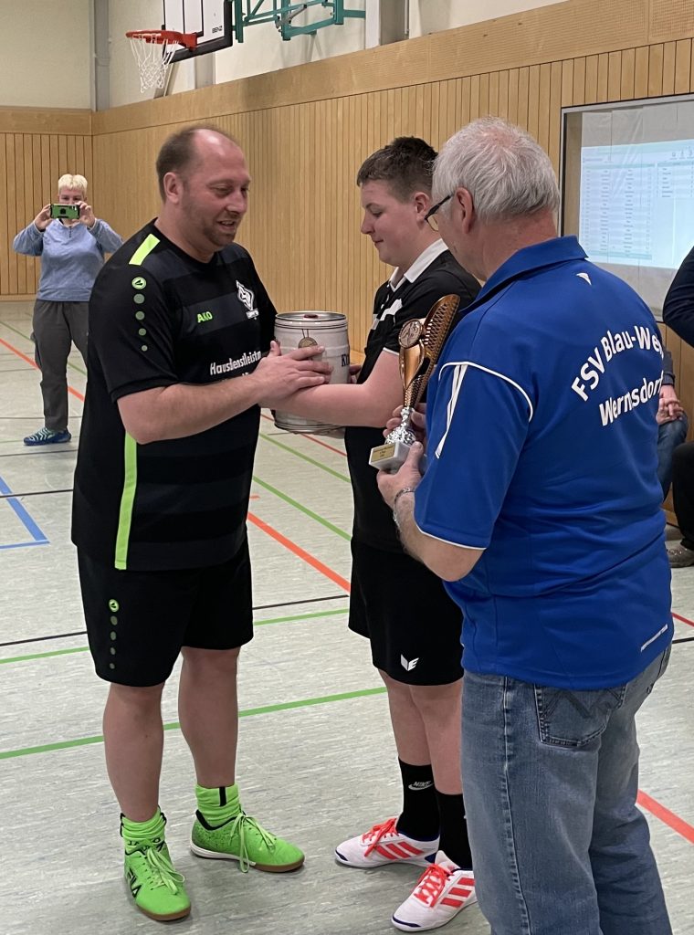 Unsere Nachwuchsschiedsrichter Aron und Lennox machten ihre Sache gut. Dierk & Anja sorgten im Vereinsraum für die perfekte kulinarische Absicherung. Unsere Gäste von Stahl Riesa gewannen verdient das Turnier – bis zum nächsten Turnier in einem Jahr – Prost!