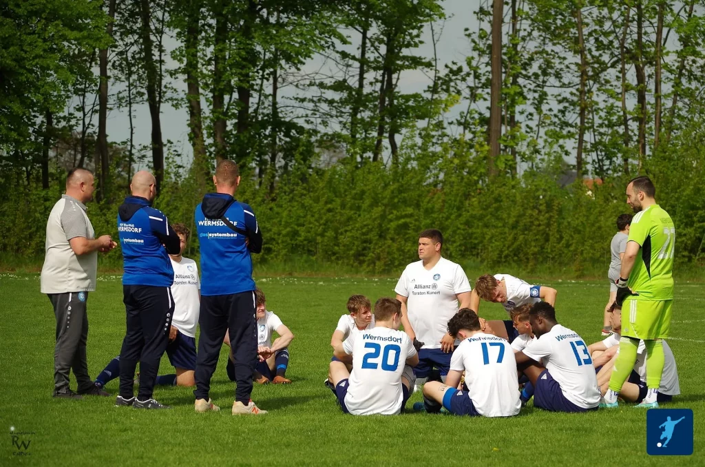 Damit hinein ins Geschehen, wo Wermsdorf vom Startpfiff weg die Musik macht. Die Gäste mit Druck und Energie nach vorne, während den Platzbesitzern offensichtlich noch der Mittwoch in den Beinen und Köpfen steckt. Krostitz kommt weder physisch noch mental aufs Grün. Die Collmkicker hingegen untermauern den eigenen Anspruch früh, als Denny Beckedahl durchsteckt auf Pascal Weidner, der nur um Zentimeter verfehlt. In der 11. Spielminute machen es die Youngster genauer. Ruven Frase dreht im Zentrum auf und chippt das Kunstleder gefühlvoll hinter die gegnerische Kette, wo wiederrum Sturmpartner Tom Zielinski nicht weniger einfühlsam zu Werke geht und die PVC-Kugel sehenswert lässig über den Krostitzer Schlussmann hebt.  Dem 0:1 lässt nur wenige Augenblicke Oscar Kupfer das 0:2 folgen und wieder ist der blau-weiße Ballvortrag nicht schlecht anzuschauen. Philipp Springer hat auf der linken Überholspur die Übersicht, serviert für Ruby, mit dem der Ball in solchen Momenten meist geeignete Füße findet. Der 22er setzt sich am Flügel durch und gibt scharf an den langen Pfosten rein, wo Osse sich energisch vom Gegner löst und wuchtig einschießt. Der Hammer des Tages ist mit diesem Doppelschlag vermeintlich schon gefallen. Die Kupferlinge verlieren in der Folge zwar mehr und mehr die Ordnung, lassen nach hinten aber nichts anbrennen und spielen vorne teilweise eine vernünftige Kugel. Weidi bedient nach 28 Zeigerumdrehungen Ruby mustergültig und der Stürmer bringt sich abgezockt mit dem 0:3 auf die Anzeigetafel. Kurz darauf scheitert Demba Mbye am Querbalken und ein toller Spielzug über die rechte Bahn mit Florian Grieser bleibt ebenfalls ungenutzt. Nach einer halben Stunde ist für Libero Denny Beckedahl Schluss, der mit Verletzungsproblemen für die kommenden Wochen erstmal fraglich ist. Für die Freistoßwaffe kommt mit Max Zschiesche der nächste blau-weiße Jungbrunnen. Die notwendigen Umbaumaßnahmen führen erstmal zu keinem erkennbaren Bruch. Bis zur Pause muss der FSV zwangsläufig nachlegen, vergisst aber in der Gemütlichkeit des Sonntages das Ziel der Ausfahrt.