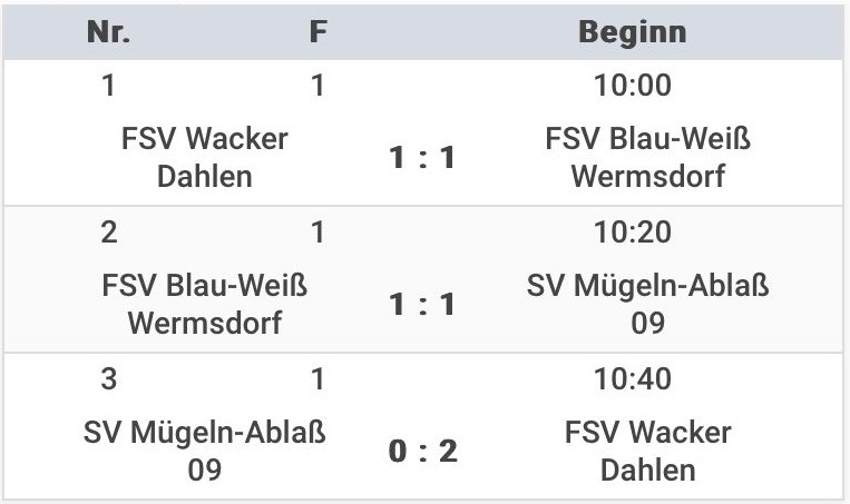 Beim Qualifikationsturnier zum Kreispokal waren die Wermsdorfer diesmal Gastgeber. Da die Merkwitzer absagen mussten, wurde das Turnier zwischen Wermsdorf, Dahlen und Mügeln/Ablaß ausgespielt.