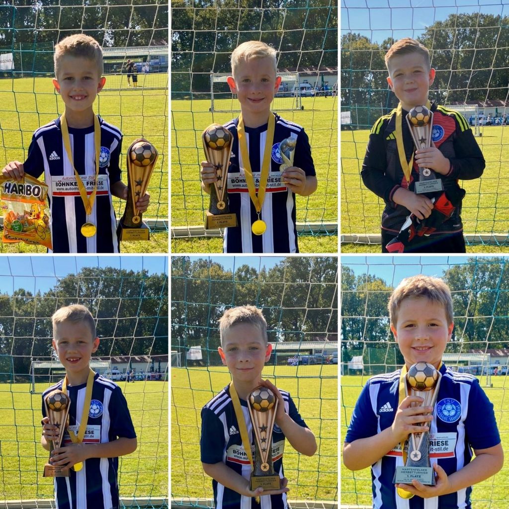 Am Ende standen die kleinen Hubertusburger auf dem ersten Platz. Zusätzlich wurde aus jedem Team der beste Spieler nominiert und fand einen Platz im „All Star Team“. Pepe sicherte sich somit einen Pokal für sich alleine. Für uns war er nicht nur Spieler der Mannschaft, sondern des gesamten Turniers. 15 Treffer gingen allein auf sein Konto, 8 Treffer auf Charly‘s und 4 Treffer auf Titus‘s Konto. Hut ab vor dieser Mannschaftsleistung! Danke an Oli, Luis, Hannes, Titus, Charly und Pepe. Das habt ihr Klasse gemacht! Benjamin Heinicke