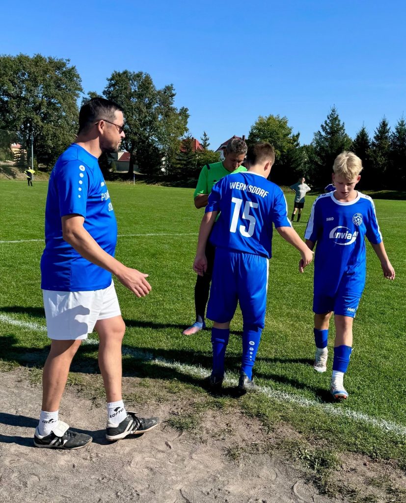 Namhafte Gegner wie Tennis Borussia Berlin, Radebeuler BC und Hartenfels 04 ließen zumindest auf dem Papier das Trainerteam aufhorchen. Somit freuten wir uns auf den heutigen Tag. Gleich in der ersten Partie ging es gegen den Radebeuler BC. Verschlafen und unkonzentriert starteten wir ins Match. Prompt führte Radebeul auch schon 1:0. Dies stellte sich allerdings als äußerst positiver „Wachrüttler“ für den ganzen Turnierverlauf heraus. Unsere beiden Motoren Pepe und Charly drehten auf und rissen Luis, Titus und Hannes einfach mit. Pepe setzte sich im Mittelfeld durch und kam zum Abschluss doch der Radebeuler Torwart hat hervorragend pariert. Titus, gedankenschnell, schnappte sich den Abpraller und Netzte zum 1:1 Ausgleich ein. Dies war der Startschuss zur Dominanz über den gesamten Turnierverlauf. Am Ende der Partie standen 4 Tore auf der Wermsdorfer Seite und einer auf der Radebeuler Seite. Diese 3 Punkte sicherten uns am Ende des Turniers Rückblickend den Gesamtsieg, denn Radebeul blieb uns über den gesamten Verlauf dicht auf den Fersen.