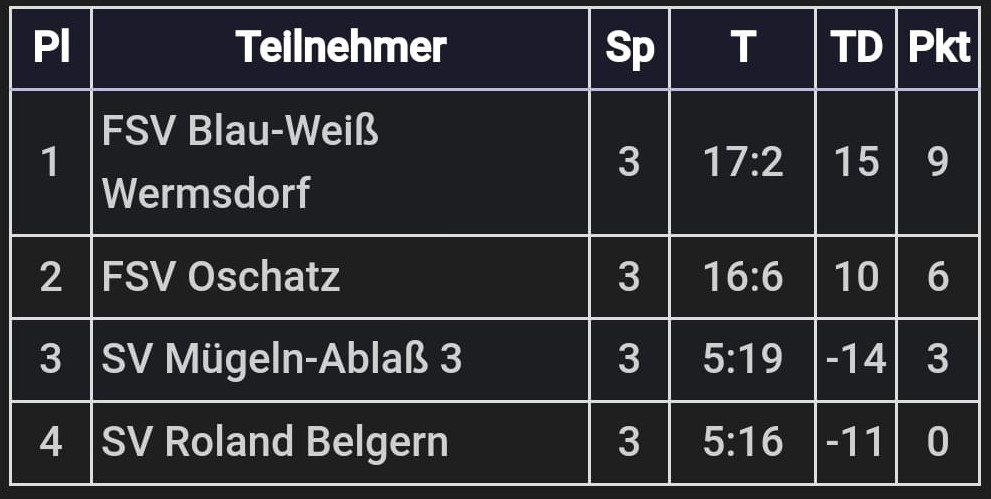 Beilrode II/Torgau II – Wermsdorf/Luppa 6:3 (1:1) Statistik