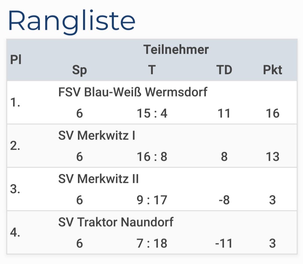 Rackwitz/Zschortau – Wermsdorf/Luppa/Burkartshain 7:0 (4:0) Statistik
