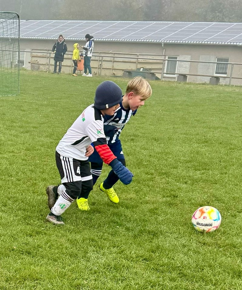 Trainer Carsten Rademacher musste improvisieren, da ihm 4 Stammkräfte aus unterschiedlichen Gründen fehlten. Tim half von den E-Junioren aus und Piet hütete das Tor für den erkrankten John. Die Rumpfmannschaft kämpfte gut und machte trotz der Niederlage 5 Buden (Kenny, Franz, Liam, Chris). Schiedsrichter Matthias Wüste leitete die Begegnung sehr einfühlsam und lobte nach dem Spiel auch die kleinen Gästekicker.