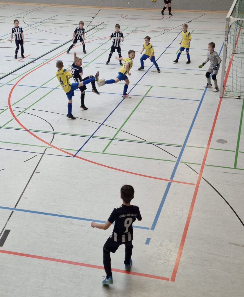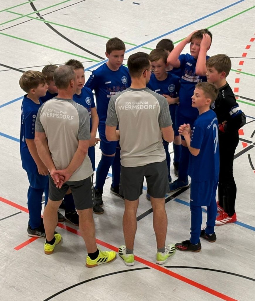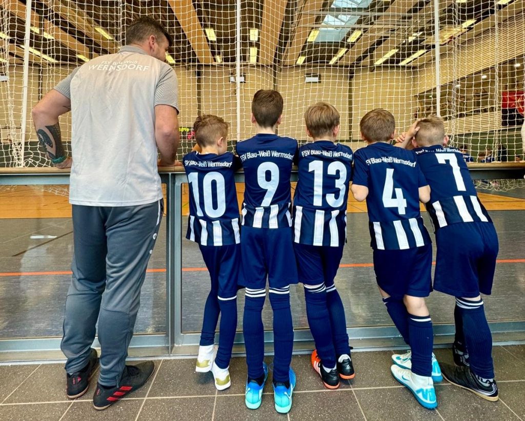 Andy Freitag mit der Turniereinschätzung: Am Samstag ging die Reise am frühen Nachmittag nach Brandis. Man kann sagen, dass die super organisierten Hallenturniere in Brandis fest im Terminkalender der Blau-Weißen stehen. Diesmal spielten wir turnierbedingt in einem 1:5 Modus, welcher für uns ungewohnt war und bisher nicht trainiert wurde. Doch das Trainerduo Jörg & Adrian plante in Ruhe die Aufstellung und besprach mit den kleinen Hubertusburgern die Taktik.