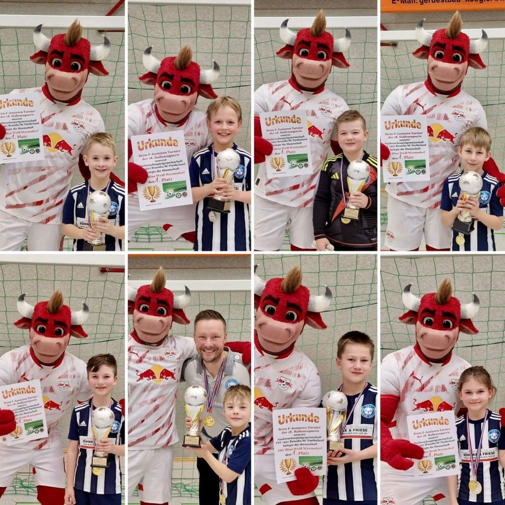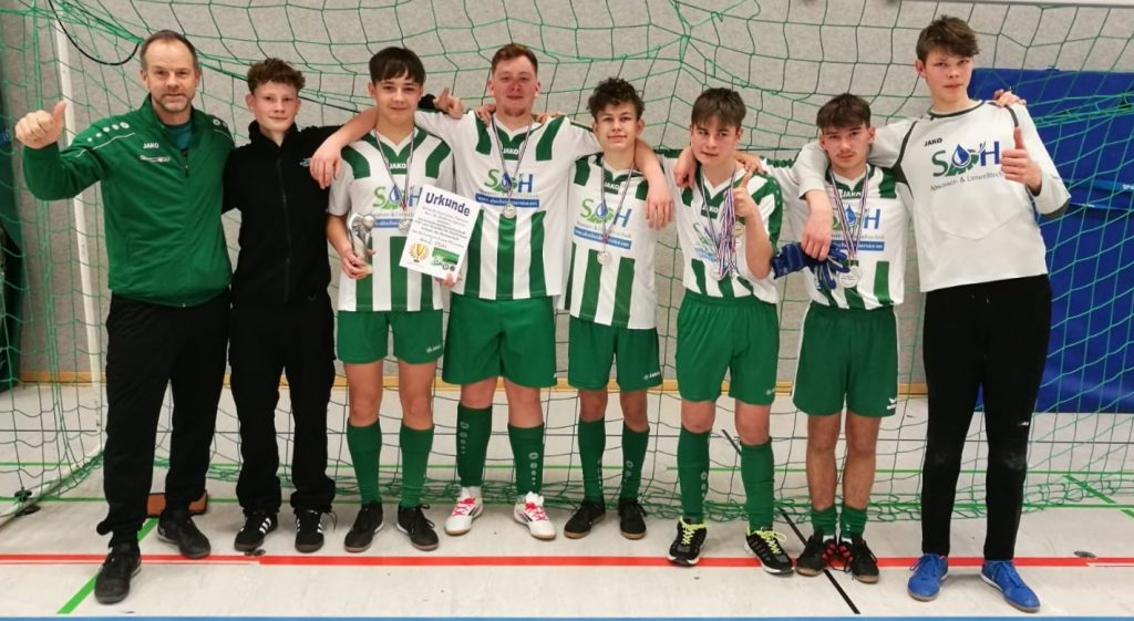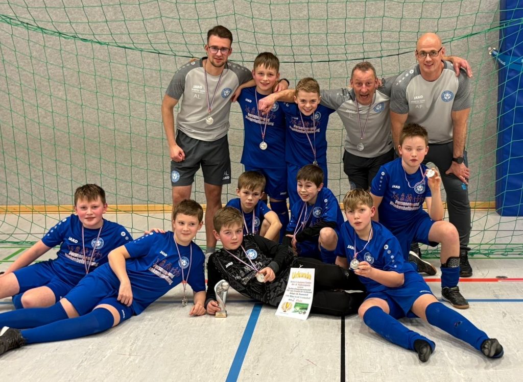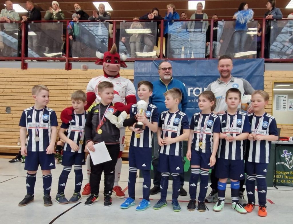 Trainer André Hinke mit der Einschätzung: Unser kleines Team kämpfte im bestens organisierten Turnier vorbildlich und setzte auch über weite Strecken die besprochene Taktik gut um. Besonderes Augenmerk legten wir auf eine sichere Abwehr und das Spiel gegen den Ball. Jan hielt im Tor großartig und uns gelangen in der Vorrunde viele erfolgreiche Abschlüsse. Das wurde mit dem Halbfinale belohnt. Hier gewannen wir gegen Partheland souverän mit 3:0 – Finale! Unseren Finalgegner hatten wir in der Vorrunde besiegt. Diesmal führten wir 1:0 doch Union Torgau konnte zum 1:1 ausgleichen. Jan hielt stark aber gegen einen abgefälschten Schuss hatte er keine Abwehrmöglichkeit. Die knappe 2:1 Führung brachte Torgau über die Zeit. Der zweite Platz ist eine tolle Leistung der Mannschaft – Ben wurde ins Allstarteam gewählt.