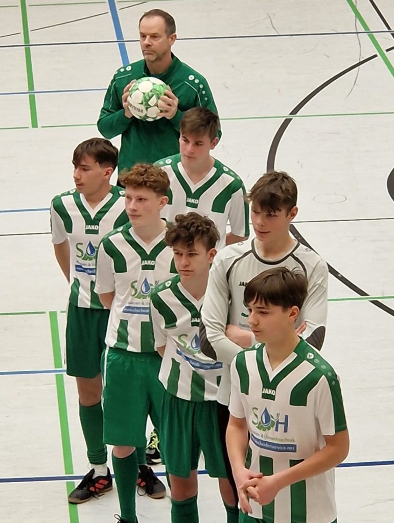Gespielt wurde in 2 Staffeln. In unserer Staffel waren mit dabei: SV Naunhof 1920, SV Eintracht Wiederitzsch und SpG Brandis/Partheland. Mit einem Sieg, einem Unentschieden und einer Niederlage konnten unsere Schützlinge knapp den 2. Gruppenplatz sichern. Den dies entschied das letzte Spiel der Gruppe, als die Wiederitzscher gegen Brandis spielten. Wiederitzsch, die in diesem Spiel Favorit waren, mussten mit 7 Toren Differenz gewinnen, um ein besseres Torverhältnis zu haben. Die Fangemeinde, Spieler und Trainer verfolgten das Spiel. Glücklicherweise ging dieses Spiel 5:0 aus und somit hatten wir 1 Tor Vorsprung vor den Wiederitzschern und zogen ins Halbfinale ein.