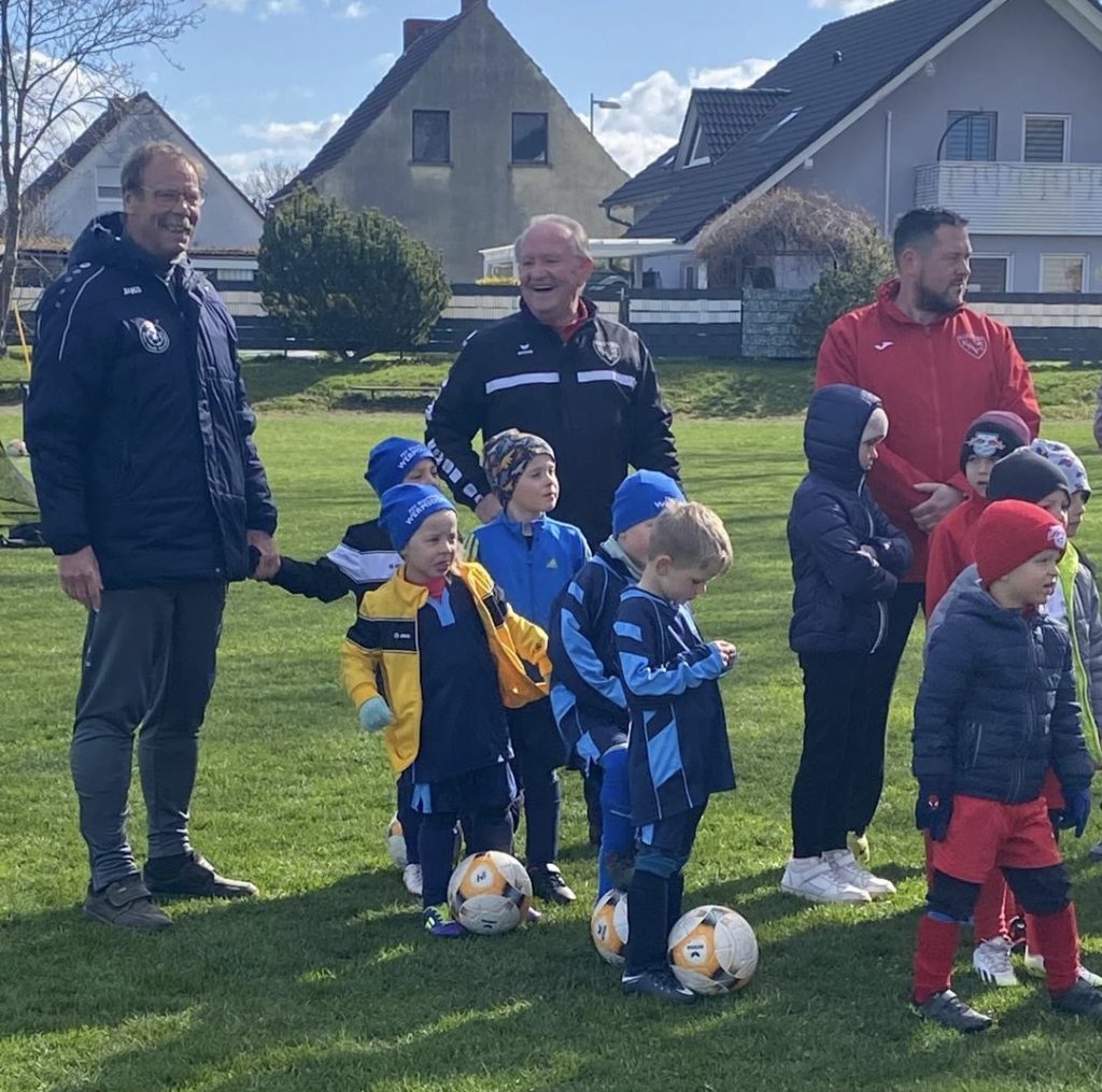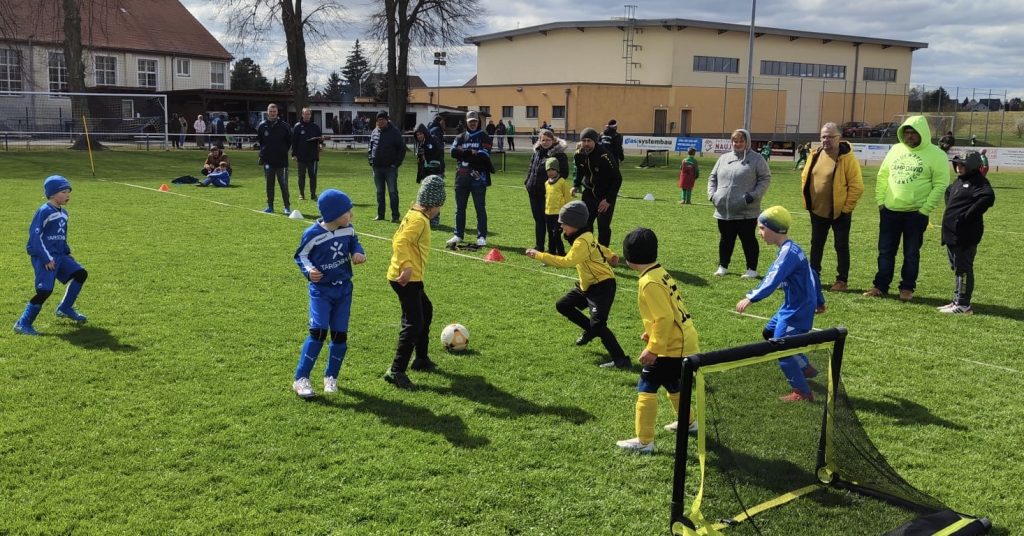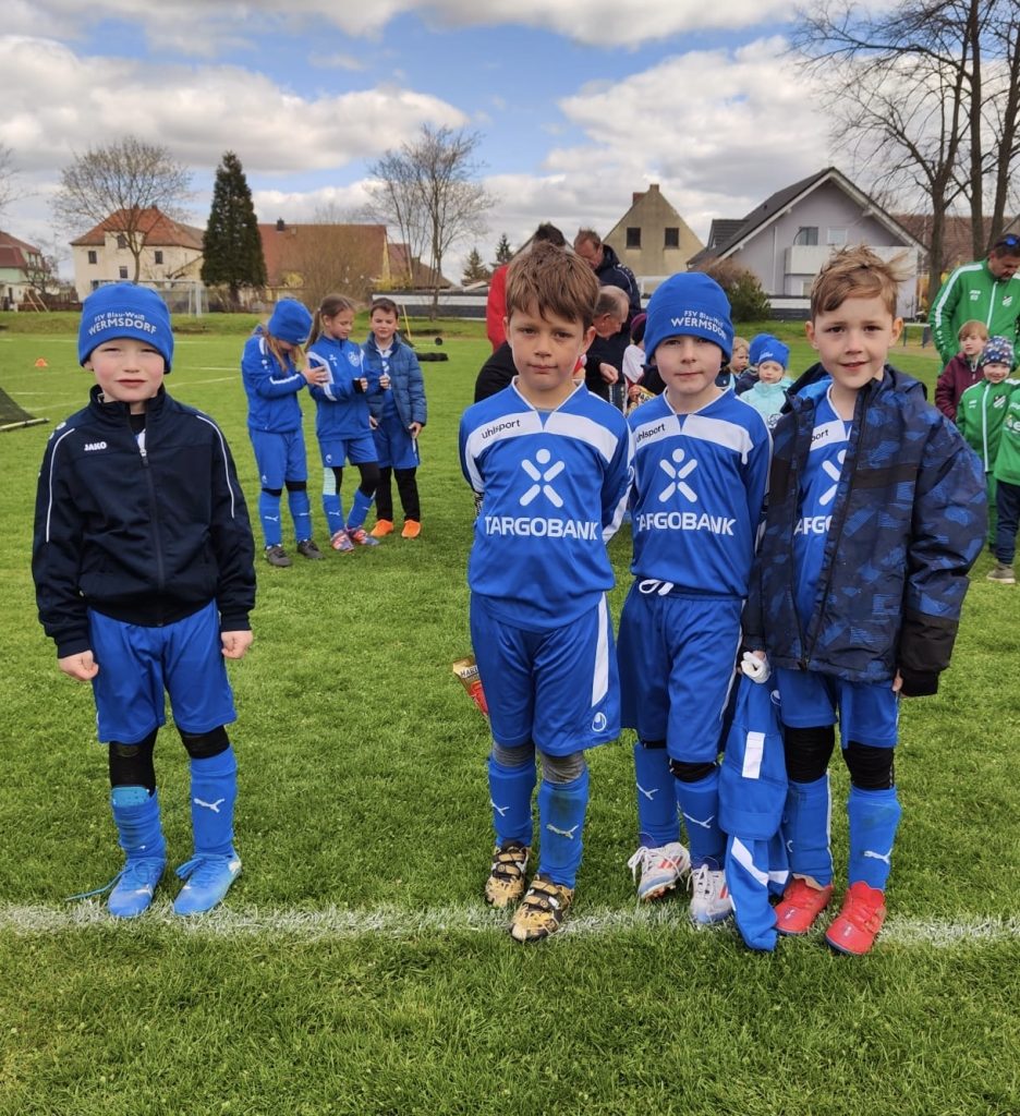 Das Turnier unserer G-Junioren auf heimischen Grün lockte am vergangenen Sonntag mehr als 50 junge Kicker aus Nah und Fern an, die vor einer eindrucksvollen Kulisse mit mehr als der doppelten Anzahl von Fans ihr Können darboten. Für die blau-weißen Kicker war das eine willkommene Gelegenheit zu zeigen, was in den vergangenen Trainingseinheiten gelernt wurde. Erstmals gab es neben dem offiziellen Turnier auch eine „Minirunde“, in der vier Teams der Allerjüngsten gegeneinander antraten.