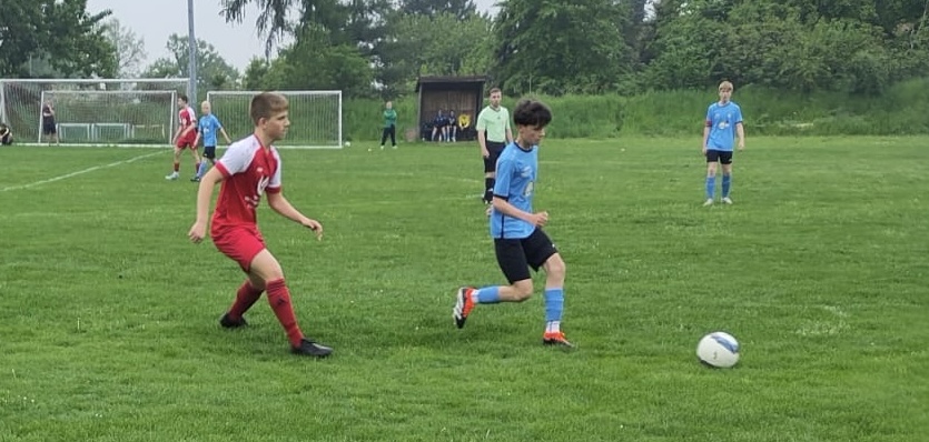 Elias besorgte nach Vorarbeit von Leon das 3:1 vor der Pause. Im zweiten Abschnitt war unsere Abwehr um Torwart Tim gefordert und verteidigte mit großem Einsatz. Elias stellte mit einem Konter auf 4:1.