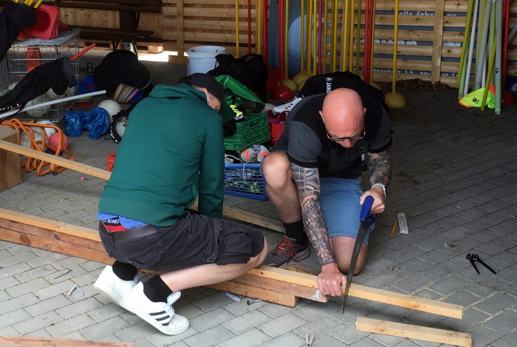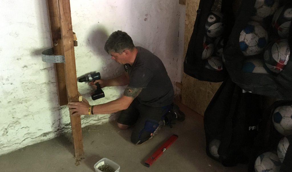 Heute wurden Ball- und der Regieraum funktional optimiert – weiterhin erfolgten erste Vorarbeiten am neuen Ballfangnetz und am Grasstreifen neben der Seitenlinie.