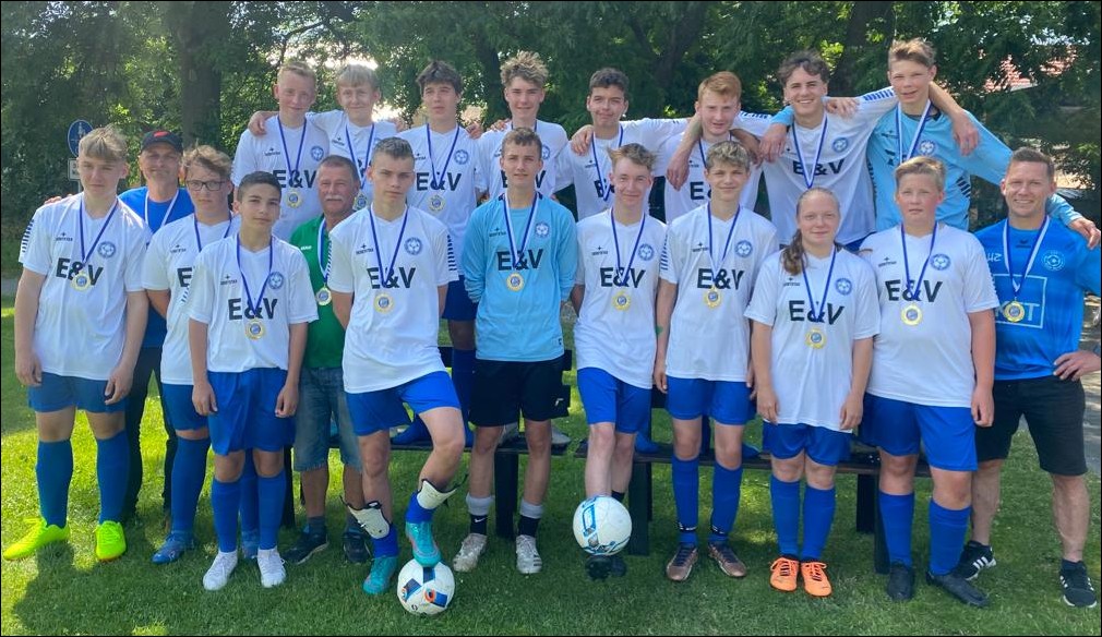 Unsere C-Junioren brauchten einen Sieg im letzten Punktspiel, um noch an Radefeld in der Tabelle vorbeizuziehen. Das gelang eindrucksvoll. Danach feierten Spieler, Trainer und Eltern den Staffelsieg und ein schönes Abschlussfest. Schiedsrichter und Staffelleiter Tobias Bendel überreichte nach Abpfiff allen Spielern eine Goldmedaille.