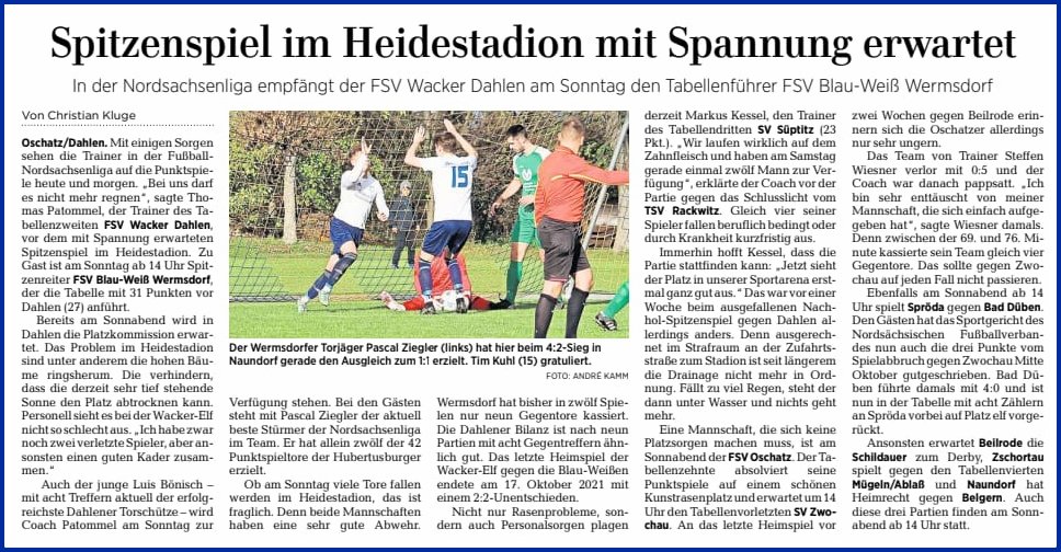 16.11: FSV Luppa – SVKA 6:0 (3:0) Statistik