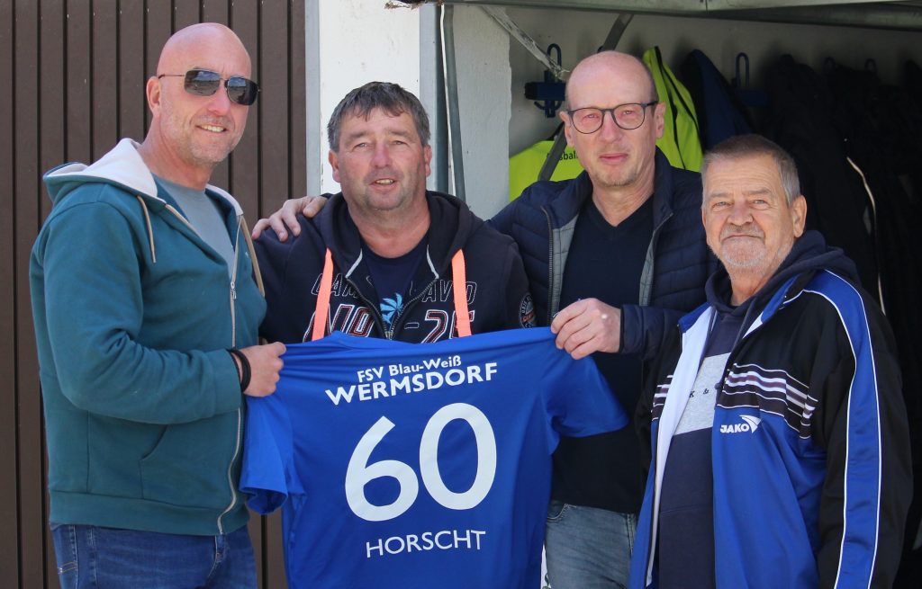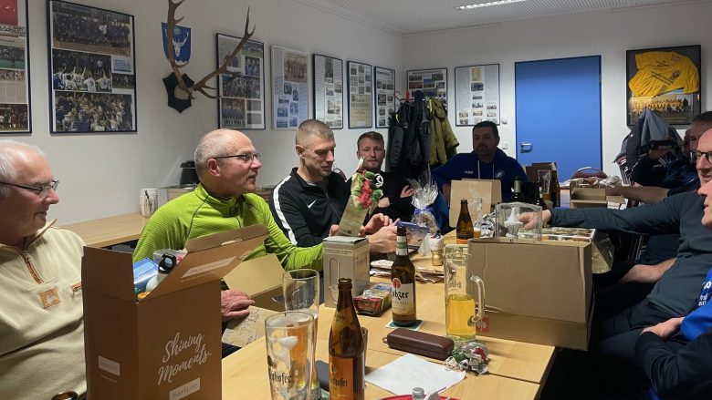 Unser Horst Hänel bekam vor dem Spiel in der Nordsachsenliga vom Präsidenten René Naujoks und Vize Ralph Horbas sein Ehrentrikot zum 60. Geburtstag überreicht.