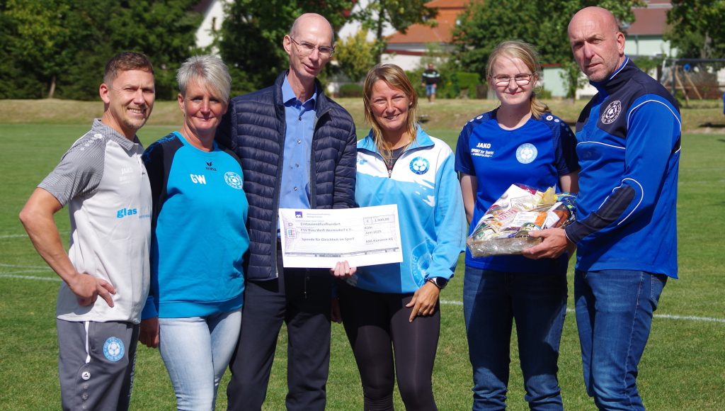 Vor dem Derby gegen Dahlen übergab Michael Camen von der AXA Generalvertretung Oschatz einen Check von 1500 € an unsere Frauenmannschaft. Wir bedanken uns ganz herzlich für die Unterstützung!
