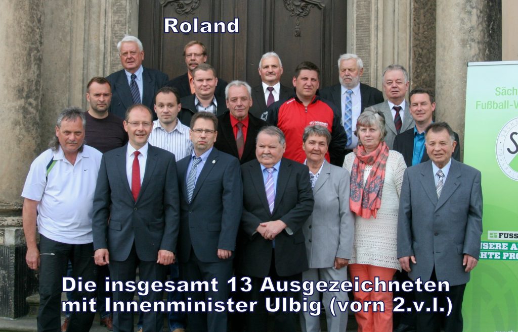 10. Mai 2015 – Roland Büchner wird in Dresden mit einer besonderen Auszeichnung für seine langjährige ehrenamtliche Arbeit geehrt. Der sächsische Innenminister überreichte unserem Jugendleiter die Auszeichnung.