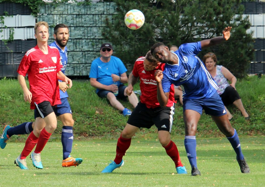 Ansonsten einiges beim Alten und einiges Neu. Trainer Dierk Kupfer schiebt Kapitän Justus Keller wieder auf die angetraute Zehnerposition um den Laufeinsatz der Offensive zu stärken. Dembappe rückt dafür zurück auf die Doppelsechs neben Johannes Keller und soll dort für körperliche Präsenz und Ruhe am Ball sorgen. Früh zeichnet sich ab, dass sich dieser Kniff auszahlt. Demba nimmt Dahlens Stürmer Marcus Gensel, in der Vorwoche zum Ligaauftakt noch Dreierpacker, komplett aus dem Spiel und zeigt vom Beginn weg eine grandiose Leistung.