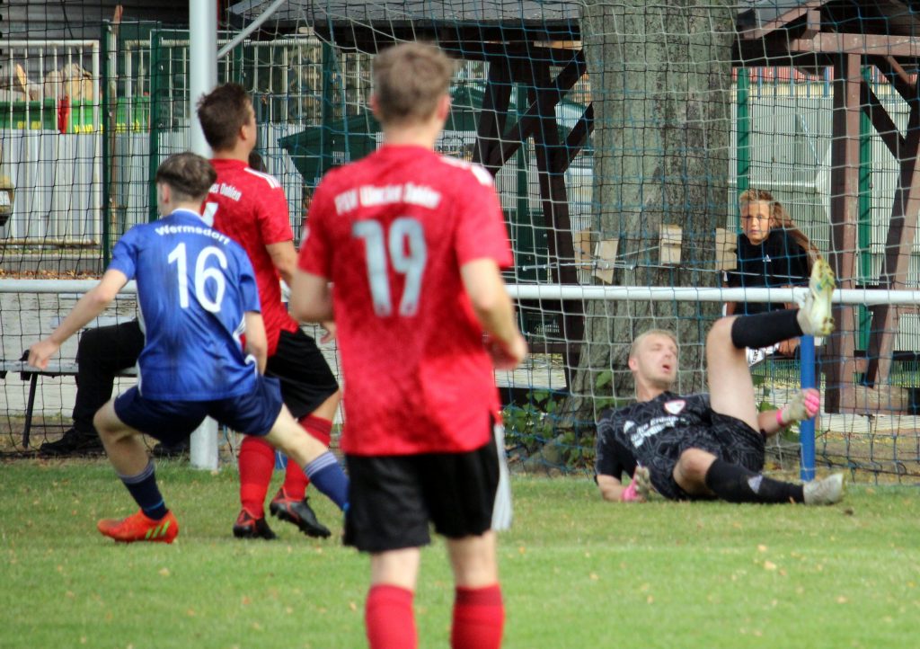 Chris Föllner im Dahlner Tor pariert allerdings stark und verhindert den Raketeneinschlag. Auf der anderen Seite macht Toni Czerney das Geschehen nochmal spannend. Ein geklärter Ball landet beim Flügelspieler, der nicht richtig attackiert wird und aus spitzem Winkel nach 80 Minuten für maximale Spannung sorgt. Die hält aber nur kurz, denn Wermsdorf hat sich für den Schlussspurt etwas besonders ausgedacht. Der eingewechselte Ruven Frase ist keine 5 Zeigerumdrehungen auf dem Platz, die 83. Spielminute läuft. Auf dem rechten Flügel bricht Louis Hoffmann durch und spielt flach an den Fünfer. Dort läuft Frase entschlossen ein und schließt gegen Föllners Laufrichtung zum 3:1 ab.