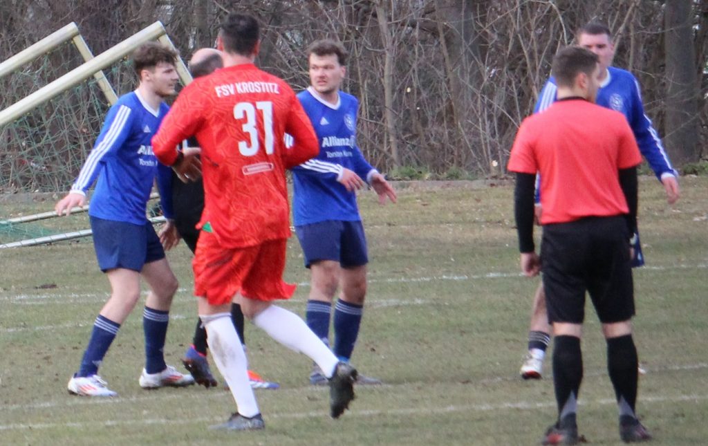 Aus dem Winterschlaf in Teilen nur schwerlich wieder erwacht, stand für die Blau-Weißen am Sonntag der Rückrundenauftakt in Krostitz auf dem Programm. Manch, für die Vorbereitung nicht ganz unwesentliche, Trainingseinheit unterlag den Witterungsbedingungen oder fiel der Erkältungswelle zum Opfer. In den Testspielen gegen Machern, Leisnig und Beilrode gab es auch nur einige Lichtblicke bei noch viel offensichtlichen Baustellen zu verzeichnen und so grassierten im Vorfeld des Pflichtspielstartes 2025 Fragezeichen über der Sachsendorfer Straße.