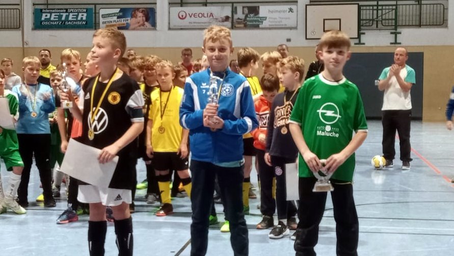 Gegen den Favoriten und späteren Turniersieger FSV Oschatz gelang nach Rückstand und tollem Fight der späte Ausgleich. Dieser unerwartete Punktgewinn löste offenbar etwas aus, denn die verbleibenden Partien gegen Dahlen und Strehla wurden souverän gewonnen, so dass zur Freude der zahlreichen mitgereisten Fans ein dritter Turnierplatz heraussprang. Freudestrahlend nahmen unsere Kicker Pokal und Auszeichnungen entgegen und freuen sich auf die kommenden Aufgaben. FH