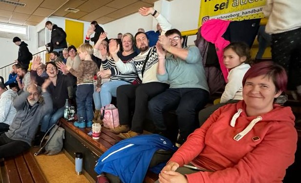 Gute Stimmung bei den Eltern unserer D-Junioren während eines Hallenturniers im fernen Schneeberg 2024