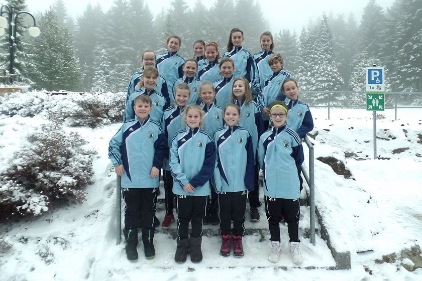 18 Mädels aus 18 sächsischen Vereinen trafen sich kürzlich beim Sichtungstraining der Landestrainer im verschneiten Rabenberg. Unsere flinke Helene (vorn 2.v.l.) tritt vielleicht in die Fußstapfen ihres großen Bruders Dominic. Bleib weiter dran Helene – du schaffst das!