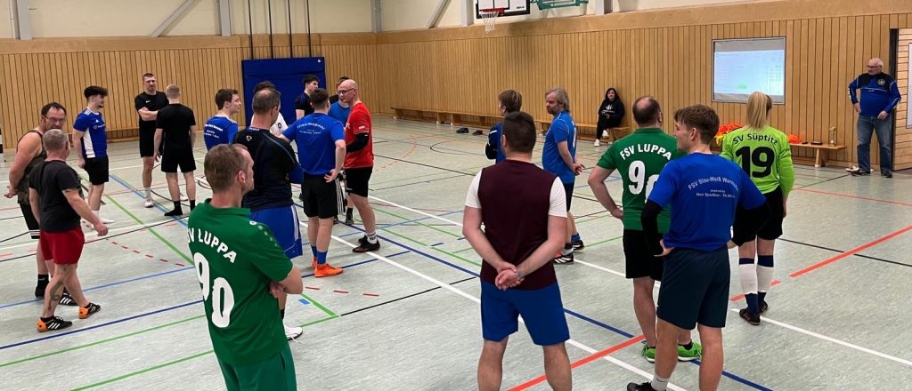 Am Freitagabend traf man sich am Fuße der Hubertusburg zur dritten Ausgabe des vereinsinternen Gedenkturniers. Initiiert als Hommage an Ehrenmitglied Manfred Züchner, hat sich der freundschaftliche Hallenkick mittlerweile als feste Größe des blau-weißen Kalenders etabliert. Auch wenn sich aufgrund der Krankheitswelle und Urlaubszeit die ein oder andere Absage ansammelte, konnte dem Grundgedanken der Veranstaltung auch im dritten Jahr Sorge getragen werden. Ein geselliges Beisammensein über Mannschafts- und Altersgrenzen hinweg, bei gutem Essen, kalten Getränken, Profifußball auf dem Bildschirm und Hobbyfußball auf dem Parkett – das lockte auch diesmal auch so manchen nicht aktiven Hubertusburger an die Sachsendorfer Straße und in Manscheks Sinne kam seine blau-weiße Familie zusammen.
