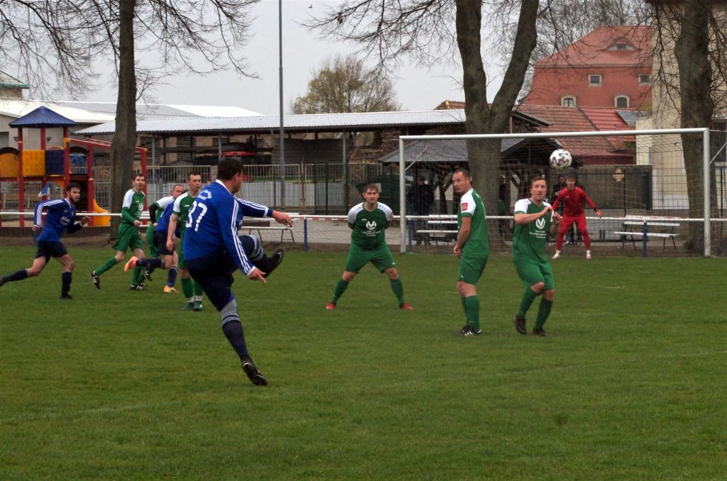 Bei regnerischen Aprilwetter empfingen die Mannen aus Wermsdorf die Gäste aus Naundorf. Das vom Trainer erwartete umkämpfte Spiel fand von der ersten Minute an statt. Die Hausherren starteten prima in Spiel, nahmen Zweikämpfe an, ließen den Gegner nicht in Ballbesitz kommen, kam leider jedoch zu keinerlei Torchancen. So verflachte das Spiel nach einer Viertelstunde und der Gast schlug eiskalt zu. Ein Konter wurde mit einem abgefälschten Schuss im Tor untergebracht. Das Spiel war nun ausgeglichen, jedoch ohne große Tormöglichkeiten. Wermsdorf kam in der ersten Halbzeit zu keinen spielerischen Möglichkeiten, lange Bälle waren zu ungenau und es gab keine Abschlüsse.