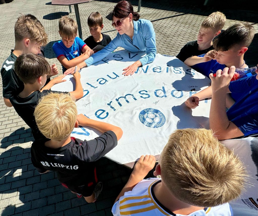 Herzlichen Dank! Danach wurde unsere Fahne eingeweiht und mit den Unterschriften der Spieler versehen. Bilder Nadine Schubert