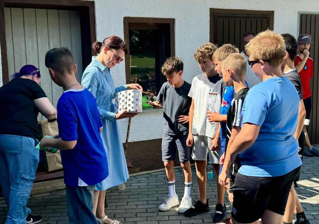 Nach einem Trainingsspiel der Kicker aus Wermsdorf, Luppa und Burkartshain. gab es leckere Salate und Grillwürstchen für alle. Dana Petzold bedankte sich im Nahmen der Eltern bei den Kickern und den Trainern der Saison 2023-24 mit netten Geschenken.