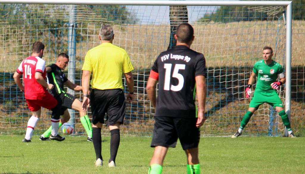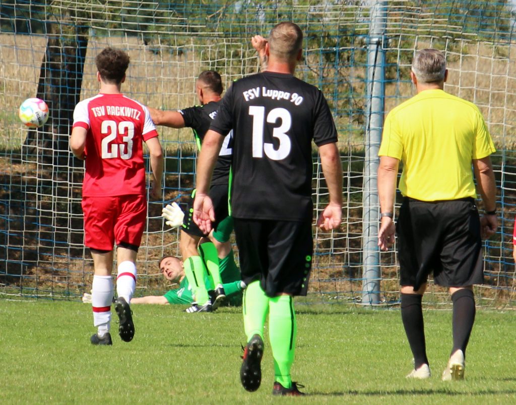 Luppa-Wermsdorf brachte vier neue Leute und hatte die klareren Chancen. So drehten die Oldies schon zum Jubeln ab aber Schiri Tino Schiffel sah den Ball noch nicht über der Rackwitzer Torlinie.