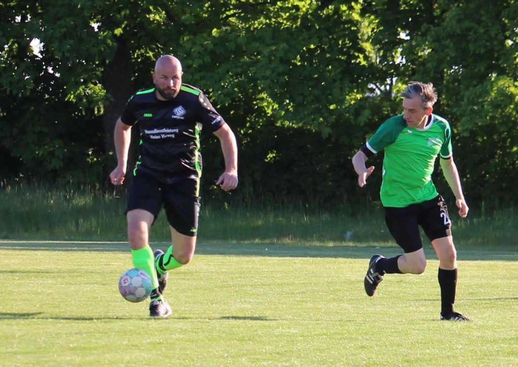 Unsere Tore schossen Carlo und André. Stoßstürmer Thomas Johst hatte etwas Pech, als sein todsicherer Treffer von der Schiedsrichterin mit dem Abpfiff der Partie gestrichen wurde. Der Auswärtssieg stand da aber schon fest – Prost.