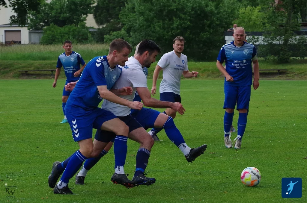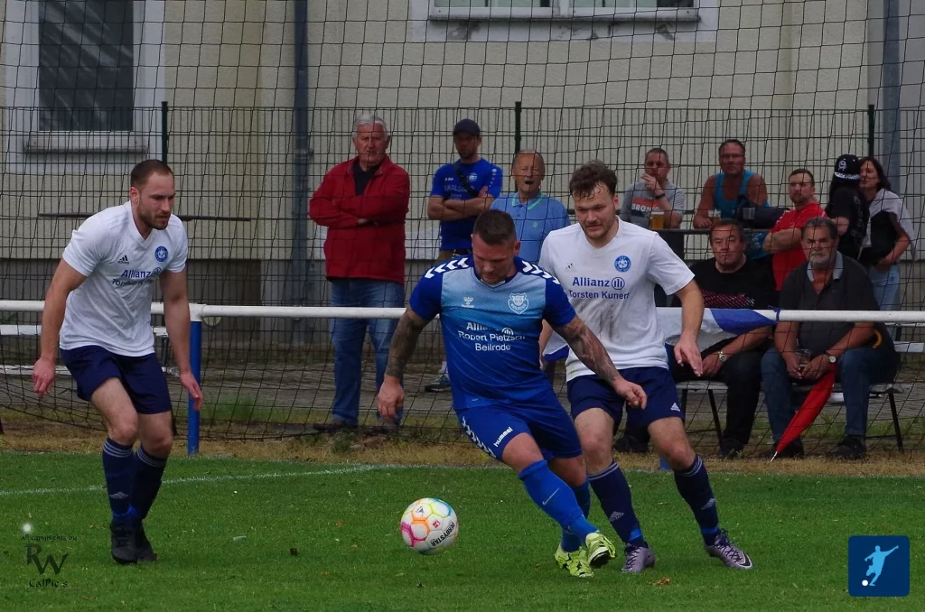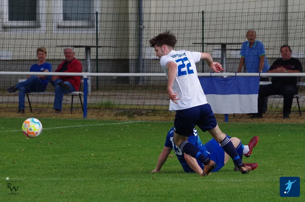 In der Crunchtime explodiert dann der Boden unter den blau-weißen Füßen. Kapitän Justus Keller lässt seine Mitspieler bei einem Freistoß hoch rausschieben und Beilrode nimmt die Beinfreiheit dankend an. Niemand fühlt sich für den kurz zuvor eingewechselten Philipp Franke verantwortlich und der bedankt sich per Kopfballtreffer und KO-Schlag.