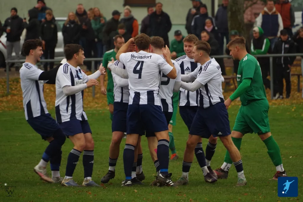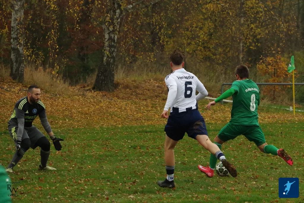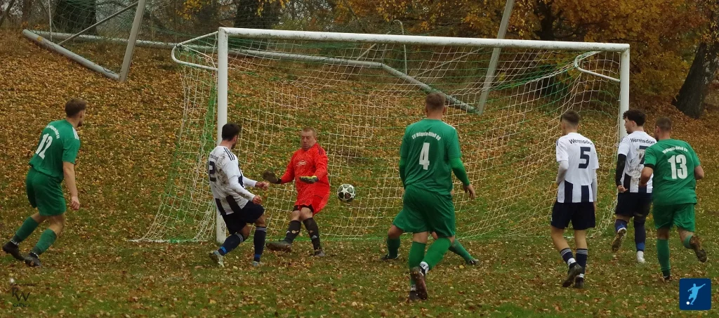 Vor 136 Zuschauern finden die Gäste den optimalen Beginn. Den ersten Angriff des Tages schließt Tom Zielinski ab, sein Schuss wird jedoch rausgeköpft. Johannes Keller fängt das Kunstleder ab und kommissioniert es aus gut 20 Metern logistisch einwandfrei unter den Querbalken. Die mannschaftliche Stärkung bei Dierk im Vereinsheim im Vorhinein scheint früh ihre Wirkung zu entfalten – Wermsdorf wird nach 36 Sekunden der Favoritenrolle gerecht.