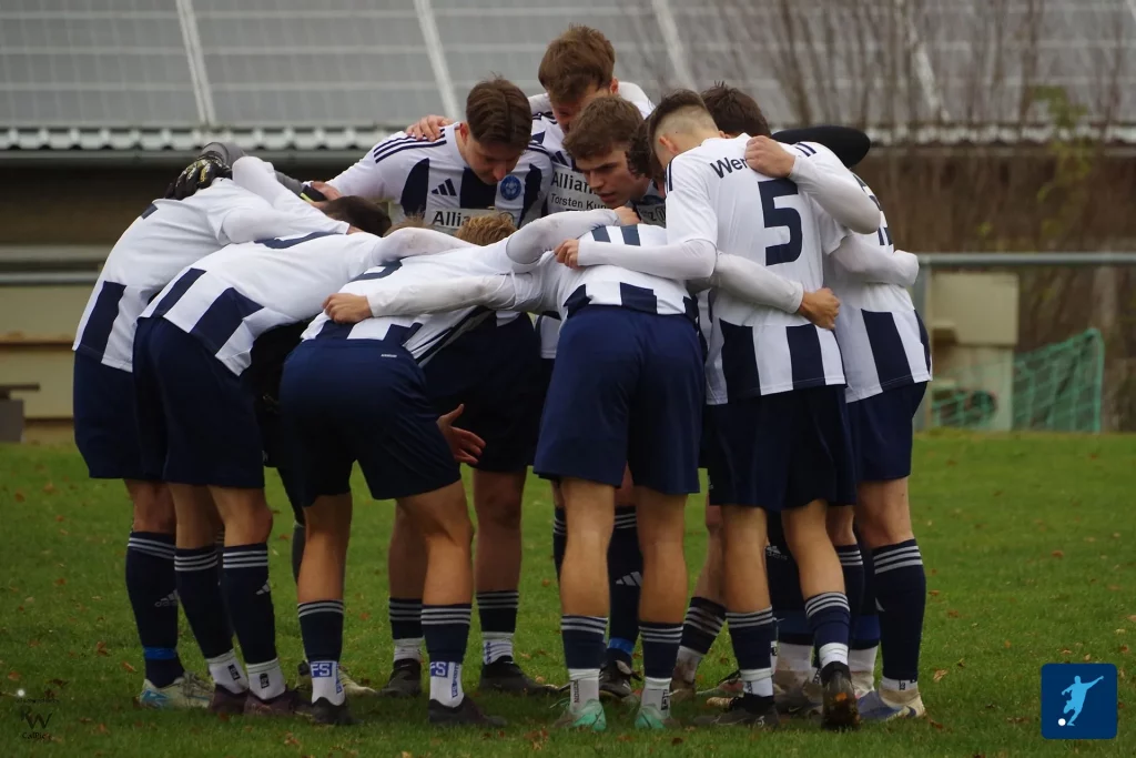 Während die Gastgeber weiter einfach bleiben, kompromisslos verteidigen und sogar spielerische Akzente setzen, suchen sich die Gäste bis Mitte des ersten Durchgangs selbst. Eine Umstellung im Zentrum bringt die Wende: Lukas Schulz schiebt auf die Sechs, während Justus Keller in die zentrale Innenverteidigerposition wechselt. Das sorgt in letzter Linie – in Addition zu Pascal Weidner – für mehr Kontrolle bei hohen Bällen und im Zentrum mit dem umtriebigen Luki für besseren Zugriff.