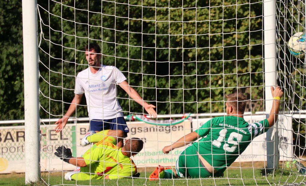 Für Zille geht es Mitte der ersten Hälfte verletzungsbedingt nicht weiter. Jonas Schley kommt neu in die Partie und bringt die Wende. Der erste Ballkontakt von Johns besteht aus einer perfekten Kopfballablage in den Lauf von Louis Hoffmann, der über die linke Ecke in den Sechszehner eindringt und mit Überzeugung flach ins kurze Eck trifft (27.). Zwei Zeigerumdrehungen später heftet sich Schleyinger dann endgültig die Mann-des-Tages-Plakette ans Revers. Über den rechten Flügel serviert Florian Grieser butterweich ins Zentrum, wo Jonas hinter Belgerns Schlussmann lauert und den durchrutschenden Ball über die Linie drückt.