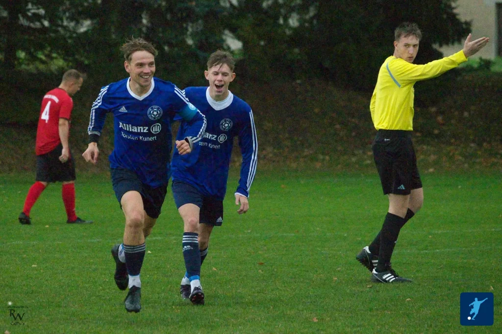 Die Hubertusburger damit direkt obenauf, in der Folge aber mit zunehmenden Problemen, die Spielkontrolle zu behalten. Es entwickelt sich ein zerfahrenes Spiel – passend zum Wetter. Als der Traktor nach einem Lattentreffer gerade beginnt, ins Rollen zu kommen, markiert Dustin Auerbach per Kopf auf der anderen Seite das 2:0 (26.). Vorausgegangen war ebenfalls ein Alutreffer nach wuchtigem Abschluss von Tim Kuhl. Das gibt der Beckebande nun den notwendigen Halt und mächtig Oberwasser bis zur Pause. Nach Ablage von Pascal Weidner am Sechzehner markiert Louis Hoffmann in der 34. Spielminute das 3:0.