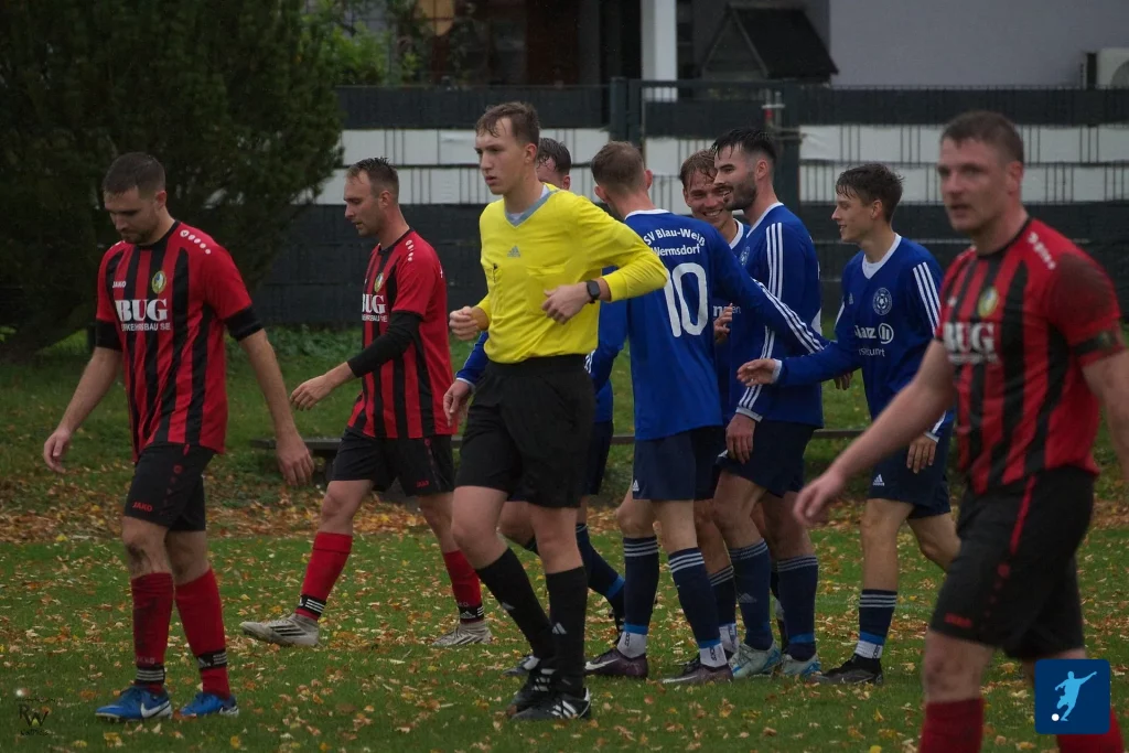 Weitere Chancen auf den Ausbau der Führung – unter anderem einen Elfmeter – versemmelt Wermsdorf bis zum Pausentee und verpasst so im ersten Durchgang den Deckelschluss. Naundorf hätte sogar fast noch verkürzen können, als Sebastian Körner vom Sechzehner volley zum Traumtor ansetzt, aber zum blau-weißen Glück nur den Querbalken trifft. So geht es in einer spielerisch armen Partie mit 3:0 ins Trockene.