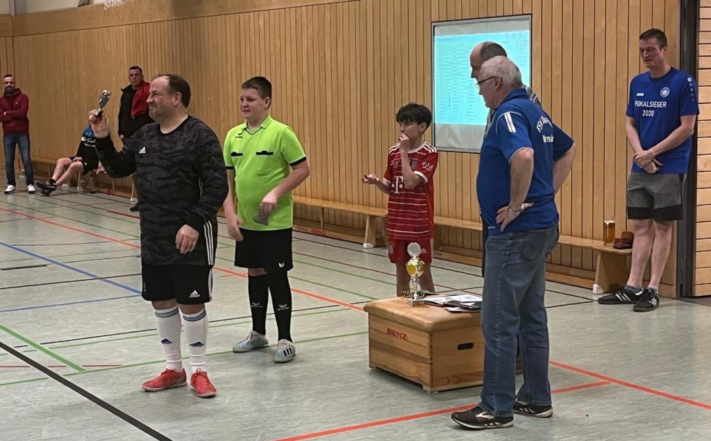 Am Ende freuten sich unsere Merkwitzer Nachbarn über den Turniersieg und holten den Pott. Der Merkwitzer Dennis Reimann setzte sich im Stechen um die Torjägerkanone gegen Sebastian Freiberg durch. Danke an Cheforganisator Gunter Moser, Frank Hammer an den Reglern, sowie an Dominik Hirt, der dafür sorgte, dass alle über den aktuellen Turnierstand zeitnah informiert waren. Dierk Kupfer rundete mit seiner starken Bewirtung den gelungenen Oldieabend ab – Prost!
